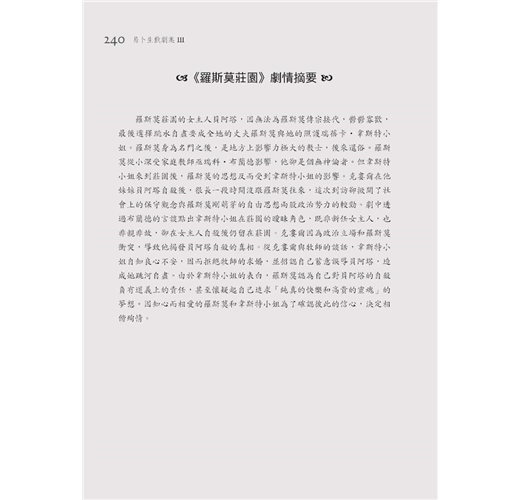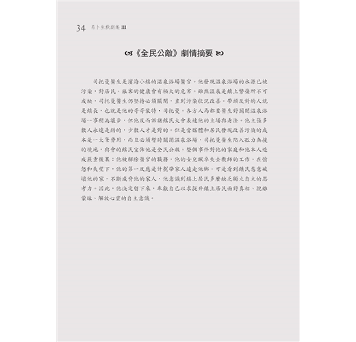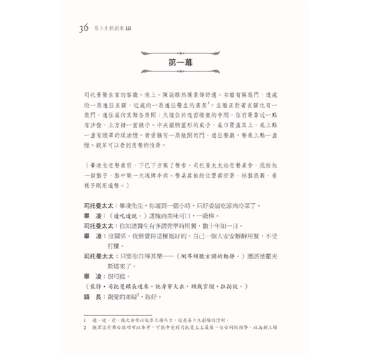 3. 提供中譯本所見最周全、最適切的注釋,一來有助於讀者跨越時間、地理與文化的鴻溝,二來有助於讀者欣賞易卜生經營寫實主義、開發象徵主義、探討潛意識心理的戲劇美學。
