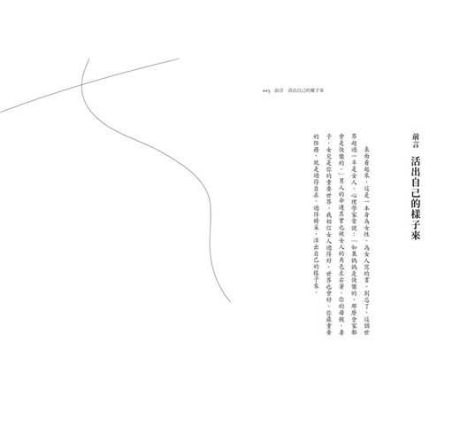 表面看起來,這是一本身為女性,為女人寫的書。別忘了,這個世界超過一半是女人。心理學家常說:「如果媽媽是快樂的,那麼全家都會是快樂的。」男人的命運其實也被女人的角色左右著。你的母親、妻子、女兒是你的重要世界。我相信女人過得好,世界也會好。你的最重要的任務,就是過得自在,過得精采,活出自己的樣子來。
