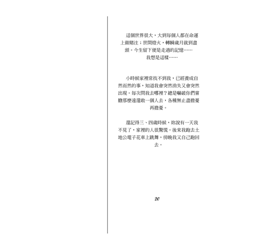 ◎20篇生活小品,寫來有些雲淡風輕,有些輕靈,卻總是激起讀者心裡的無限漣漪。
