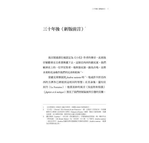 我耳聞過那位被認定為《小花》作者的聲音,此刻我仔細聽著並且希望傳遞下去。這個亞西西的窮光蛋,我們歐洲史上的一位稀罕智者,他與狼交談,跟鳥共鳴,並將水果和花朵喚作我們的兄弟和姐妹。