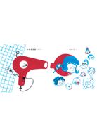 ✦大膽的顏色選擇,既衝突又帶點古早味,不只在視覺上不斷感受溫度的切換,同時凸顯了吹風機的存在與它強烈的企圖心。一支吹風機的故事也能這麼好看幽默,真是服了一口啊!
