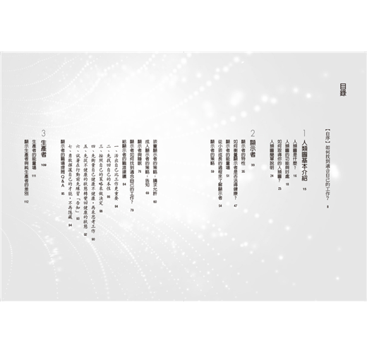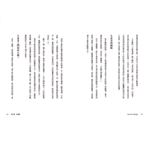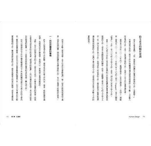 本書從每一種能量類型出發——顯示者、生產者及顯示生產者、投射者、反映者,闡述各自的能量運作機制,並依此延伸出適合自已的工作樣態,也讓人們有機會重新思考自己與工作的關係。
