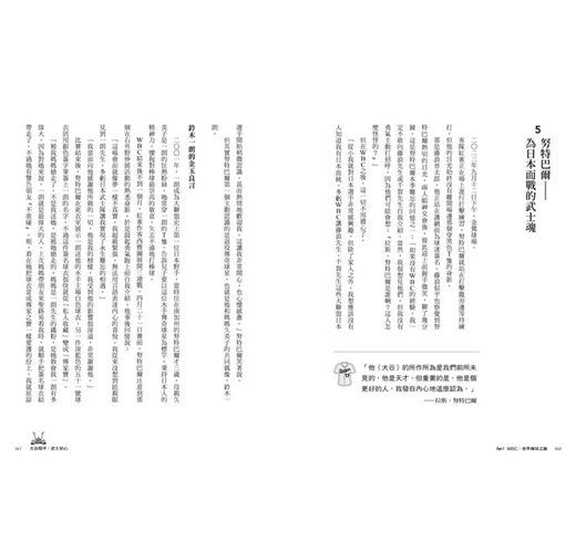 ◆本書不只是大谷翔平的個人紀實,更從WBC日本武士隊「一球入魂」與「無私道」的野球武士精神,闡述達比修有、山本由伸、佐佐木朗希、村上宗隆、拉斯.努特巴爾的人生故事,情節勵志,筆觸動人。