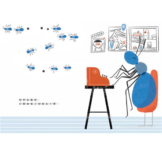 「可是,螞蟻搬得動比自己重一千倍的東西、螞蟻可以殺死一頭大象,而且螞蟻無所不在,好像只要打個信號就能組成大軍!」小男孩越想越害怕、越想越累。他決定將螞蟻的故事改編成戲劇,演給大家看,而且故事裡的他化身為威猛的恐龍,狠狠的擊退螞蟻!結果,這齣螞蟻與男孩共演的戲碼落幕後,他們的關係會有所改變嗎?