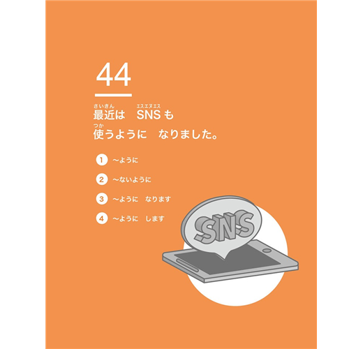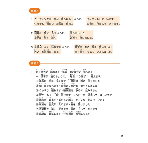 本系列分為「初級」、「進階」、「中級」三個等級,每個等級由4冊構成,每冊6課、每課4個句型。但不包含平假名、片假名等發音部分的指導。完成「進階1」至「進階4」課程,約莫等同於日本語能力試驗N4程度。