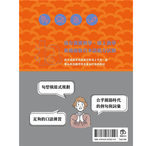 有鑒於網路教學日趨發達,本社與日檢暢銷系列『穩紮穩打!新日本語能力試驗』的編著群「目白JFL教育研究會」合力開發了這套適合以媒介語(中文)來教學,且通用於實體課程與線上課程的教材。編寫時,採用簡單、清楚明暸的版面、句型模組式教學、再配合上每一課的對話以及練習題,無論是「實體一對一家教課程」還是「實體班級課程」,又或是「線上同步一對一、一對多家教課程」,或「線上非同步預錄課程(如上傳影音平台等)」,都非常容易使用(※註:上述透過網路教學時不需取得授權。唯使用本教材製作針對非特定多數、且含有營利行為之非同步課程時,需事先向敝社取得授權)。