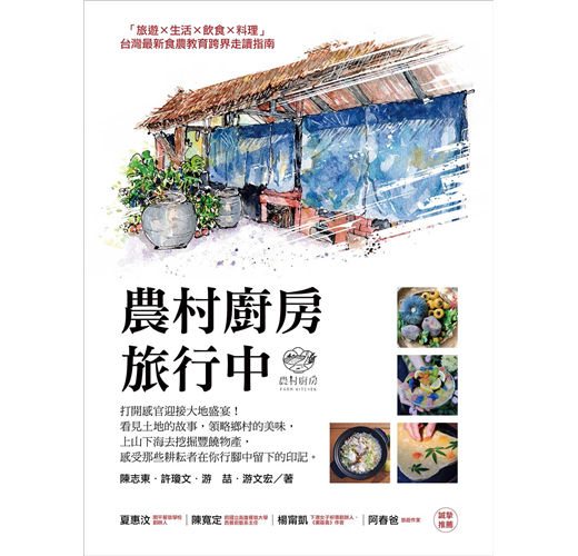 以介紹休閒農場為主的《農村廚房,旅行中》一書,打破人們對傳統農場的固有印象,看到農場新的生命力。讀者不僅能透過書本遊歷台灣各地風土與自然美景,還可以循線前往,實際品嚐原汁原味的地方特色美食;書中介紹的每一道菜餚,都代表著農場主人對大自然與創作的熱情,享當地、食當季、原食材,確實實踐「從產地到餐桌」。