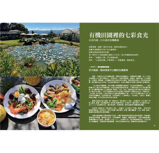 此外,透過本書還可以發現,台灣雖然地狹人稠,但山上有有機農場、平原有田園農場,農場主人依風土氣候條件,選擇與土地相連、用心耕種,處處芳草。一如書中提到:距離內湖捷運站十五分鐘車程,就能抵達台北碧山採草莓,而且還是台灣第二大的草莓園。內湖近年已被「科學園區」印象覆蓋,然而撇開人工科技的印記,還有一座由一對銀髮夫妻守護著的「白石森活有機農場」,讓人驚覺:原來近在咫尺,就有隱身在都會裡的大自然。