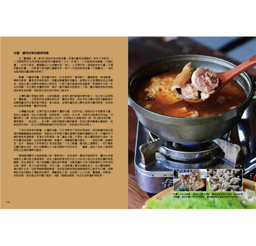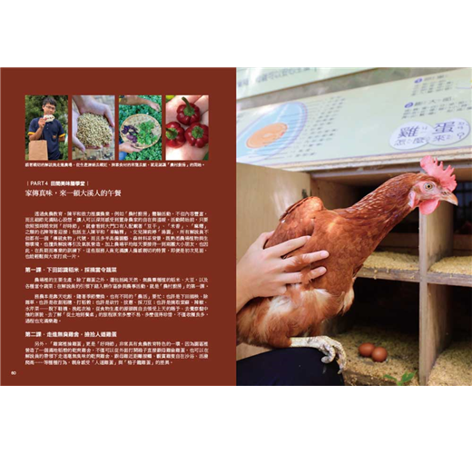 筷箸之間的貪慾,怎可能只滿足於蔬菜水果?畜牧場、水產養殖與田野休閒的創新,全都成為台灣人飲食風景的藍圖共同體。這本書精選全台各地的農場,透過地方風土的描繪,立體化農場主人的理念容顏,接著再細數農家的食材、製品,最後至「農村廚房」示範的創意菜餚,從客家菜、原民料理到台洋合併,篇篇色香味俱全。看似是單點的風土滋養,連起來都是這片土地善待每個人口腹之欲的包容與期待。