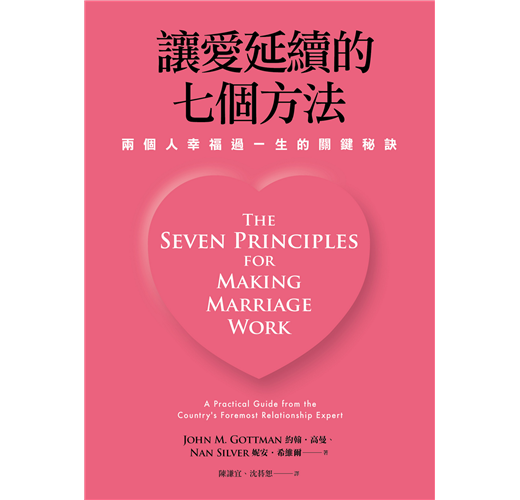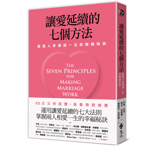 單身或結婚是個人生活方式的選擇,既然選擇結婚就要過幸福婚姻。高曼在書中強調幸福婚姻可以提升個人免疫系統,然而婚姻並不總是一路順暢,難免會有困難,自我治療或尋求諮商都是可行之道。自我治療通常都是閱讀相關書籍、聽演講或上工作坊,而婚姻治療師本身也得充實自己的知識、技術與能量,這本《讓愛延續的七個方法》就是一本優質婚姻治療手冊,讀這本書,再複習一遍就有如上了三天的「婚姻治療」課程,有概念如何使「相敬如冰」或「相敬如兵」的婚姻起死回生。
