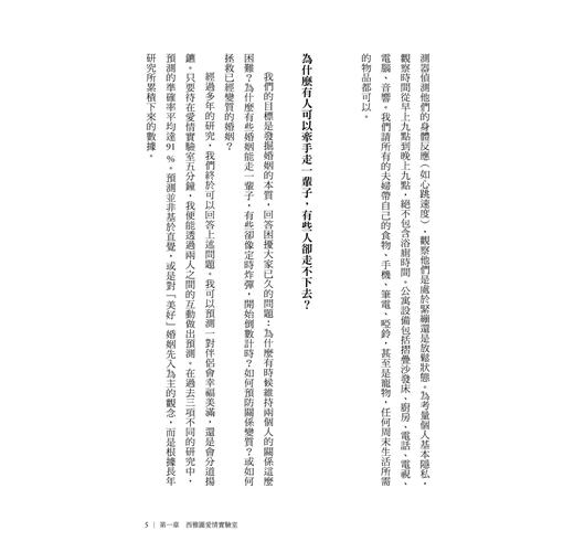 本書作者以超過40年的時間,研究並觀察幾千對伴侶後發現: