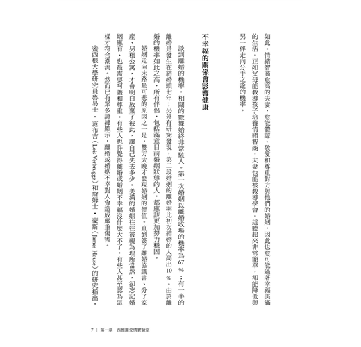 關於情緒智商與穩定的伴侶關係的卓越之作,非常實用。──丹尼爾‧高曼╱EQ之父、哈佛大學心理學博士