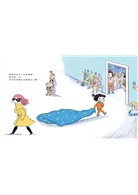 在這十個跨頁畫面中,我最喜歡的有三幕,首先是「如果你決定穿著舞裙踢足球,踩著芭蕾舞鞋射門⋯⋯」,偏向女性化打扮的小男孩神情自在,一腳射門得分,來自觀眾席的加油也依舊熱烈,巧妙結合性別氣質的畫面看了相當舒心。另一幕是「如果你決定在高聳的雪山上 ,與雪人的兒子結婚⋯⋯」,那飄揚在天空中的「新婚快樂」雖然精簡,卻洋溢衷心的祝福。作者低調將LGBTQ+的內涵融入,我特別喜歡這含蓄卻富有深意的溫柔。還有一幕是尾聲時的「或是 ,成為永遠的最後一名⋯⋯」,右側畫面是正式的頒獎台,眾人目光的焦點,但左側卻也單獨另置一個小舞台,更有大把從天而降的星形碎花嘉勉。自己的獎自己頒,是一份對努力的溫暖肯定。