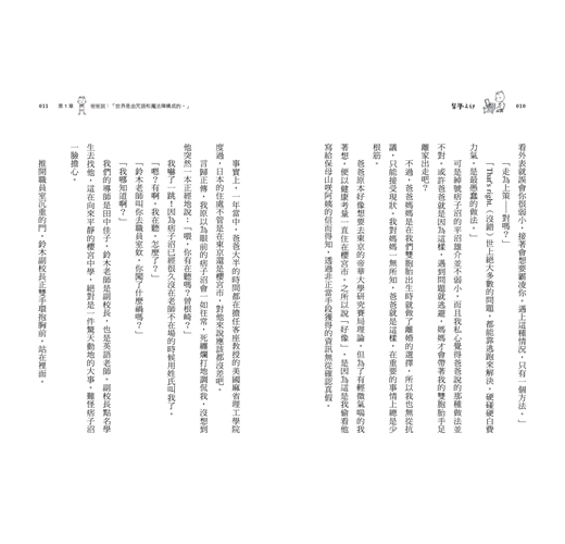 可是我以前就從爸爸那裡聽說,教授這種人就像是山上的猴子王,自以為是全世界最了不起的人,所以我很快就習慣藤田教授那種口氣了。習慣之後,藤田教授的邀約頓時顯得吸引力十足。因為能夠逃離無聊的灰色教室,這種機會可是千載難逢。