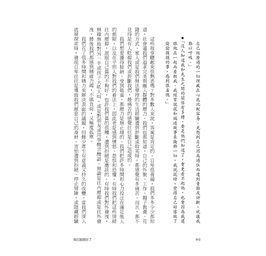 每天努力在感情、工作、人際、家庭中扮演完美角色,難免會覺得無論怎麼做,自己永遠不夠好、不值得被愛,不夠滿足人生勝利組的期待。「不夠完美!」和「擔心別人怎麼想?」的壓力,讓我們焦慮、抑鬱、想不開,陷在討厭自己的情緒中走不出來。
