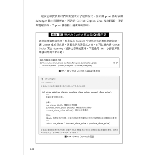 GitHub Copilot 是由 GitHub 與 OpenAI 大型語言模型(LLMs)合作開發的 AI 程式設計助手,它從巨量程式碼庫中學會所有的程式設計技巧,將人類過往的程式精華融為一體。只要你學會用正確的方法、下達明確的提示詞、妥善地用自然語言與其溝通,就能發揮它的無窮力量,大幅幫助你提高開發軟體的成效。