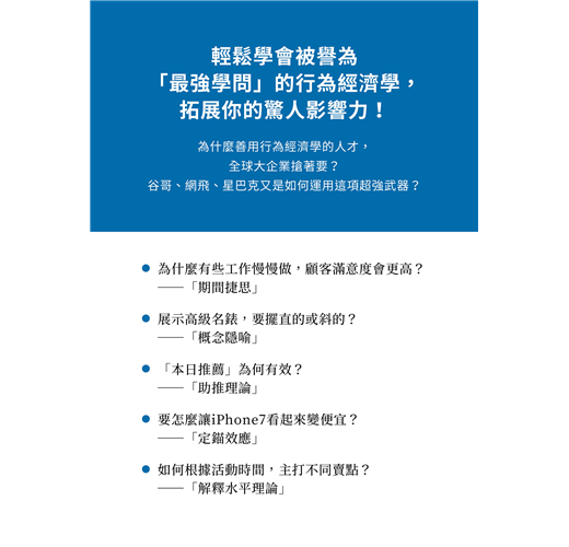 行為經濟學會被譽為「最強的學問」,就是因為具備如此驚人的影響力。全球商業菁英都注意到這一點,才會爭相學習行為經濟學。