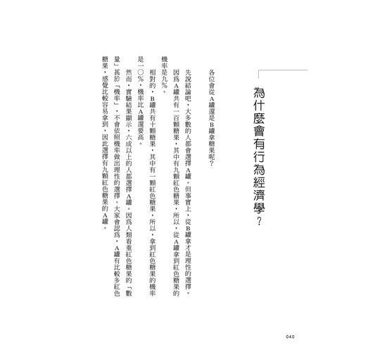這一門學問主要分析「人類從事經濟活動的行為原理」,所以才叫「行為經濟學」。