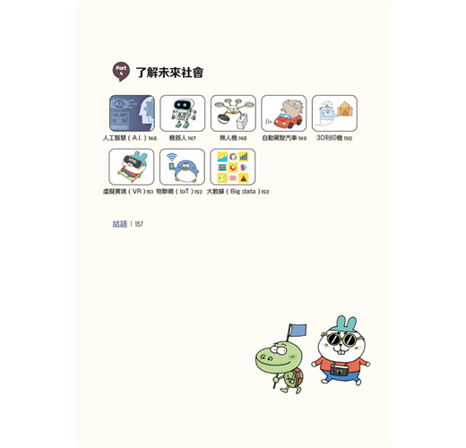 「公車車掌小姐、人力車夫、製冰人」等過去常見的職業全然消失。由於科技日新月異,出現了「大數據專家、社群媒體專家」等新興職業。因此,預測未來社會變化非常重要。第四部分將探討過去社會的變化,介紹代表第四次工業革命特徵的關鍵詞,例如「人工智能、無人機、物聯網、虛擬現實」等。