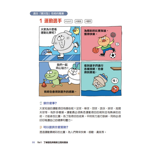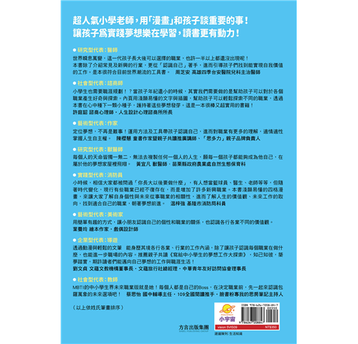 本書除了介紹常見及新興的行業,更從「認識自己」著手,進而引導孩子們找到能實現自我價值的工作。是本很符合目前世界潮流的工具書。 周芝安 高雄四季台安醫院兒科主治醫師