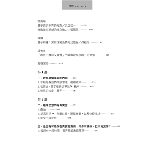 本書為讀者解開了量子理論的永恆謎題。作者筆下描繪出一個美麗無比、令人著迷,但另一方面又使人感到些許不安的量子世界。