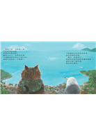 貓老大和黑尾鷗凌空飛越在大海上的畫面,