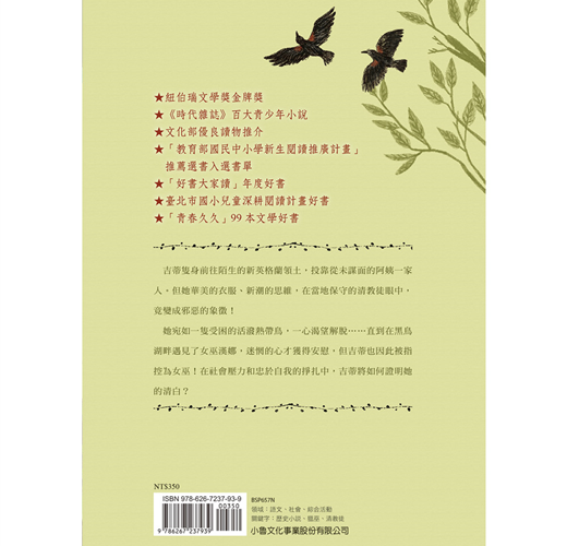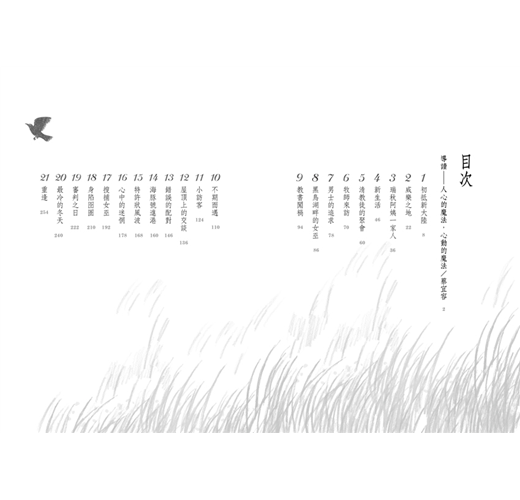 文字彷彿被下了女巫的魔咒,一翻開此書,目光便難以離開。看著吉蒂在清教徒的阿姨家努力工作,尋找生存空間;看著她在威廉熱情的目光下,以為嫁給他便能擺脫困苦;也看著她投入大草原的懷抱,與傳說中的女巫成為好友……直到皆大歡喜的結局,才能讓人滿足地闔上書頁。