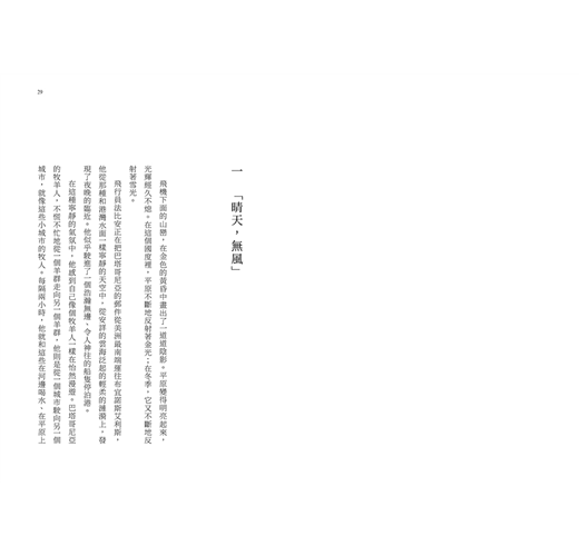 飛機下面的山巒,在金色的黃昏中畫出了一道道陰影。平原變得明亮起來,光輝經久不熄。在這個國度裡,平原不斷地反射著金光;在冬季,它又不斷地反射著雪光。