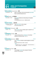 A2:工作與公司、工作場所內外、工作與任務、工作場所中的物品、例行公事與活動等19大主題。