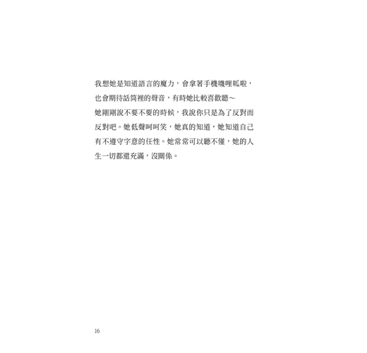 《夾心》是一本寫了三年的母親日記,很短,成長幅度卻大,像新生兒一樣。整理的過程,歷經了三次交稿。第一次初稿交得早,新手父母好像初識字,課本都讀過了但是寫不好;第二次處於兩三歲的稿,歷經多次低谷爬出來、或是出不來的時刻,整份看起來滿是傷痕,過於露骨的悲傷,我向編輯坦言,真的是不知如何是好。
