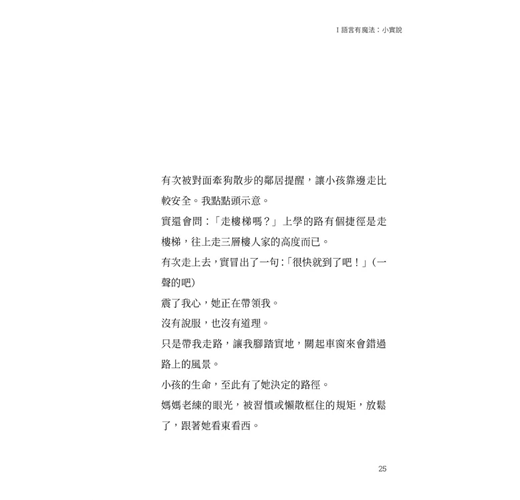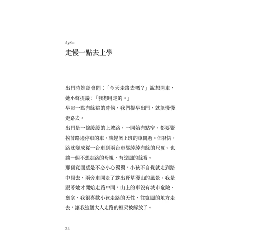 小孩的天性,是往寬闊的地方走去,讓大人走路的框架被解放了。就只是帶領著走,也能讓大人腳踏實地。小孩的生命,至此有了他自己決定的路徑。