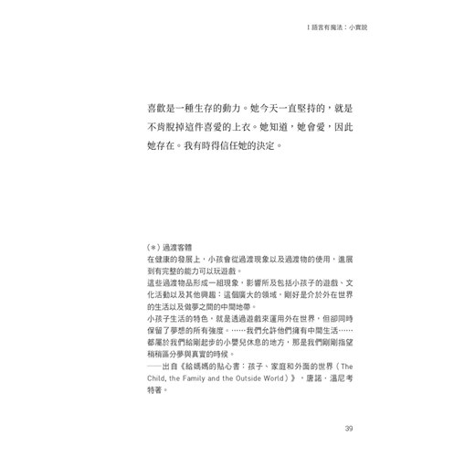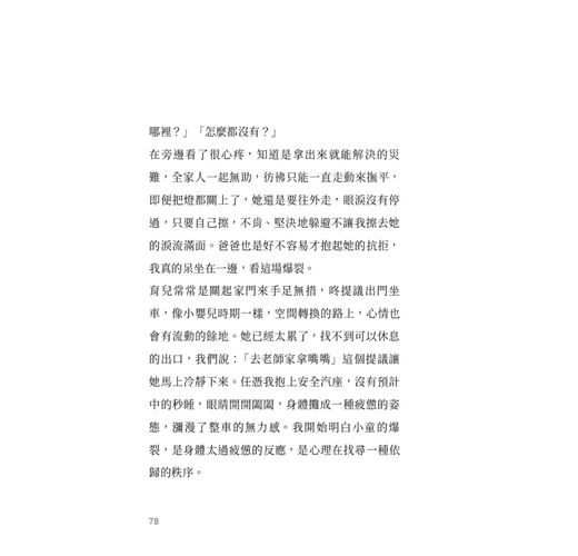 這本書沒有說服,也沒有道理。每個家庭都是那麼獨一無二,沒有標準的育兒公式,總在不斷試錯中,找到自己的勇敢。