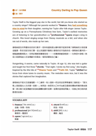 1. 介紹當紅西洋歌手的英文長篇閱讀文章與名言,富娛樂性的文章讓英語學習更有趣
