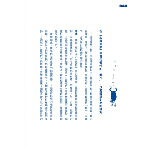 本書亦收錄湯淺政明親自繪製的封面、內頁翻頁動畫與出版紀念短篇動畫,為喜歡日本動畫、湯淺政明粉絲不能錯過,至今唯一完整訪談實錄。