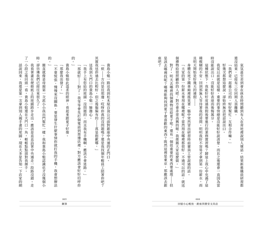 翻開手帳,最醒目的就是前頭有著紅色星星,底下畫著重點線的「離職申請」。她想起酒店的媽媽桑,那個平時高雅有禮,在店裡女公關被客人欺負時,第一個衝出來罵人的媽媽桑;那個在外打扮光鮮,在家卻穿著超俗T-shirt的媽媽桑;那個像媽媽,卻又不是她媽媽的媽媽桑。明明,她還有好多話想告訴她⋯⋯