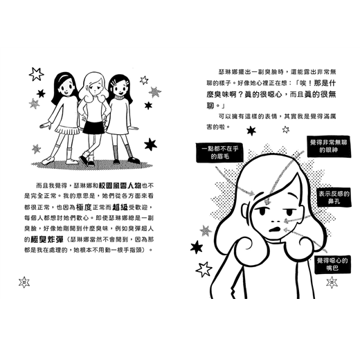 ・劇情既有趣又感人,表達的觀念很棒——如果你希望閱讀一個故事,能夠教你「當大家都試圖改變你的感受或行為,這時保持自我、不受他人影響就變得很重要」,那這本書就是你應該閱讀的。非常適合7-9歲的孩子——在這本書中,故事文字、插圖漫畫和圖像小說達到了完美的平衡!——亞馬遜讀者 Mike Watson