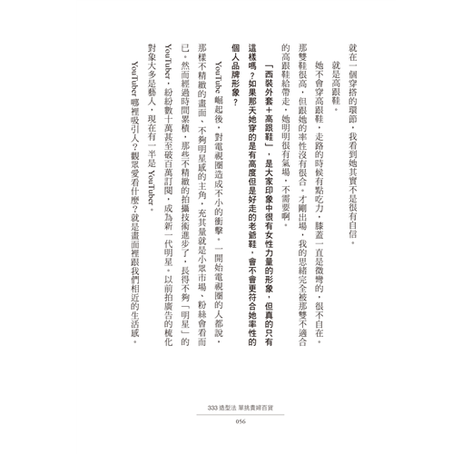 無論身形高矮胖瘦、臉孔天生麗質與否,都有權、也需要好好了解自己,藉由妝髮穿搭,展現出屬於自己的獨特,這本《333造型法 單挑貴婦百貨》,都能巧妙地幫助到你的某個部分。