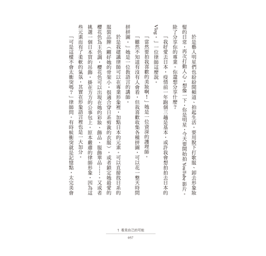 看她一路走來,逐步打造人生的專業,現在更願意分享這些專業的眉角,讓這些不專業的我們也能輕鬆保有自我並完成專業形象,實在是讀者一大福音!