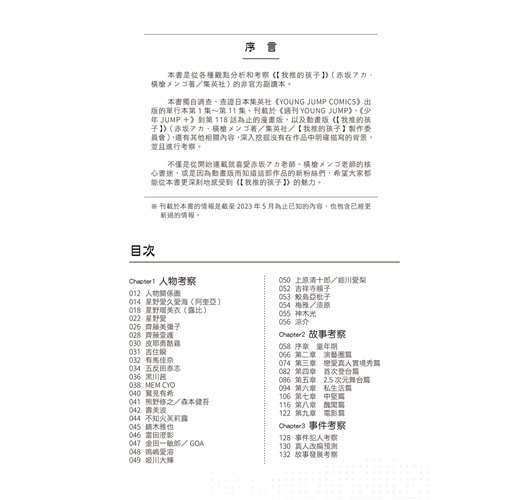 特別收錄!御宅藝的世界、聖地巡禮、演藝圈生態小專欄《【我推的孩子】》出自「赤坂アカ×横槍メンゴ」兩位實力派漫畫創作者的豪華組合,強強聯手以創新觀點切入,深度刻劃「演藝圈和飯圈」生態的衝擊之作!