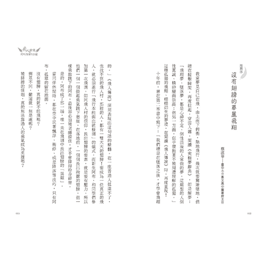 極推薦這本層次豐富、情感飽滿的《飛人傳說》。期待所有讀者打開這本台灣的《哈利波特》,從幾千個翅膀高的山壁,一路滑翔,飛出孤獨,也飛出傲人的勇氣與自信!