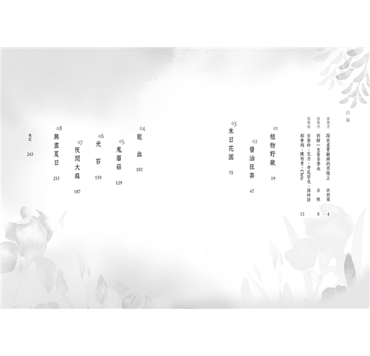 ● 他像是太陽升起,讓她身上的叢聚花序逐漸萎靡,一朵朵捲曲,進入她鼻孔那無盡的洞穴裡,如此才能永遠保有他身上的香氣。