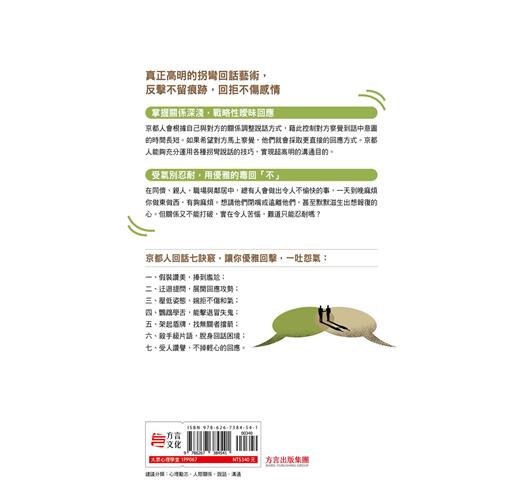 人生在世,碰到委屈當然要回擊,但要如何回的漂亮,回的不傷感情。向經歷千年淬鍊、有著高超溝通技巧的京都人學習真正高明的拐彎回話藝術。