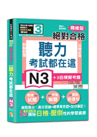 1.臨場感百分百: 想要考試發揮120分的實力?本書設計完全符合N3日檢聽力的題型,讓您熟悉答題時間和字數。每次反覆練習,就像您已經坐在考場,手握筆準備寫卷!日檢聽力實力將大幅提升,準備好驚艷考官吧!