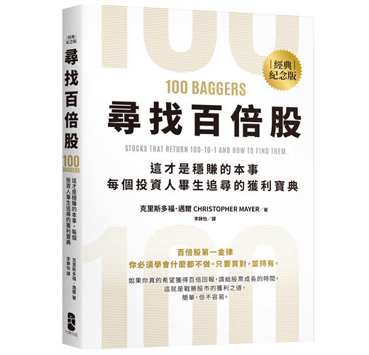 所謂的百倍股,指的是每投入1元就能獲利100元的股票。作者克里斯多福.邁爾縱覽1962年至2014年的365支百倍股研究,發現了其中的運作模式,他將告訴你如何找到這些如明星般閃耀的百倍股。你將明白,投資百倍股是人人都可成就的事。你不需要有MBA學位、或是在對沖基金公司上班的專業,只需要簡單的金融概念,還有一些能在股票與投資獲利更多的「小技巧」與技術。