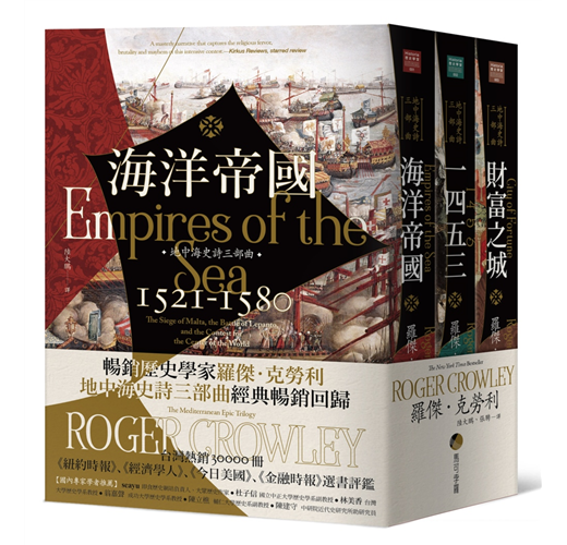 「《海洋帝國》、《一四五三》和《財富之城》這三本書互相關聯,組成了一個鬆散的三部曲,敘述地中海及其周邊地區的歷史。讀者可以挑選其中任意一本書開始讀起。這三本書涵蓋的時間達四個世紀之久,從西元一二○○至一六○○年,這是基督教與伊斯蘭文明間激烈衝突的年代,涉及一連串的帝國,包括拜占庭帝國、鄂圖曼帝國,以及位處西班牙,信仰天主教的哈布斯堡王朝。……我希望這三本書能夠幫助台灣讀者,對仍在影響我們世界的地中海歷史與事件的魅力與重要性有一層更深的理解。」——作者羅傑.克勞利中文版序