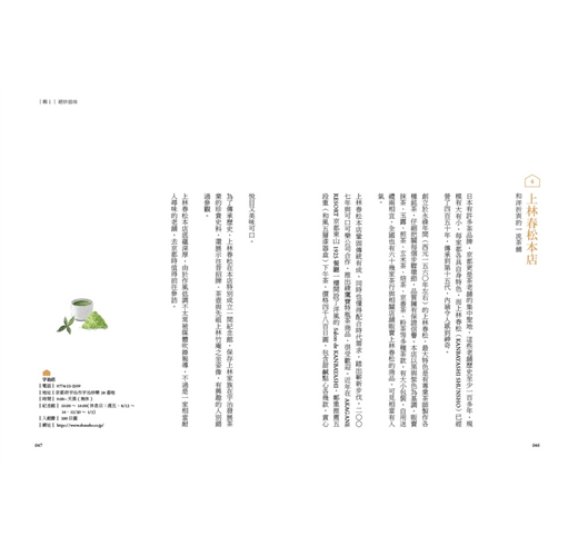 返台後,卻覺得精挑細選但沒回音的其他二十幾間老舖,其實也很值得與讀者分享,於是決定以這十二家深度採訪攝影︵含對方提供照片︶的老舖為主結構,整體再延伸至五十家。也就是十二長篇文章,再搭配三十八短篇介紹,而創造出本書的模樣。重要的是這五十家老舖幾乎都有店舖,可讓讀者直接消費體驗。老舖可說是京都的商業主體,更創造了這美麗城市的深厚文化底蘊,相信此書對於想探索京都的人具有相當的參考價值。