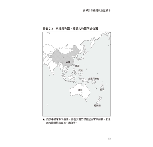 這是為什麼?只要把前面提到中國的盤算,和帛琉的位置一起來思考,就一目瞭然──假設中國奪取了臺灣,並在索羅門群島建立軍事據點,那麼很快的,帛琉也會立刻被中國納入囊中。