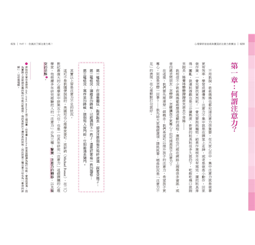 用的生活科學參考書,讓我們能更敞開心,多面相認識「注意力」,發現孩子的優勢。尤其是〔教養便利帖〕中揚名把拔的心內話,總是不吝於分享真實教養情況下的腦內OS,拉回現實,調整自己的心啊!