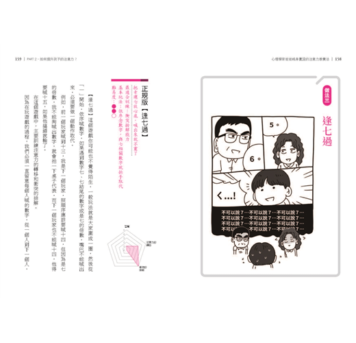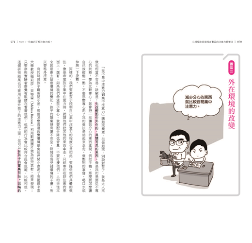 我非常認同揚名在書中先介紹了注意力的運作機制,然後告訴你要怎麼在實際操作中應對孩子注意力的缺失,並規劃適合孩子的介入方案。這些介入方案都非常容易操作,而且揚名還很貼心的把介入方案做了多層次的規劃,可以適用在不同年齡層、注意力水準不同的孩子身上。我還看到了繁體中文版中,針對遊戲部分有更細緻的分類與介紹,的確是用心之作。