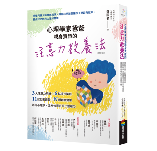 這本書和一般注意力或者育兒書籍有一個明顯的不同,就是理論與實踐並重。我覺得揚名老師的可貴之處,就是能夠把複雜的理論,解釋得很清楚,並且以很淺白的方式告訴爸爸媽媽,要如何來協助孩子變得更好。——魏坤琳(北京大學心理與認知科學學院教授)